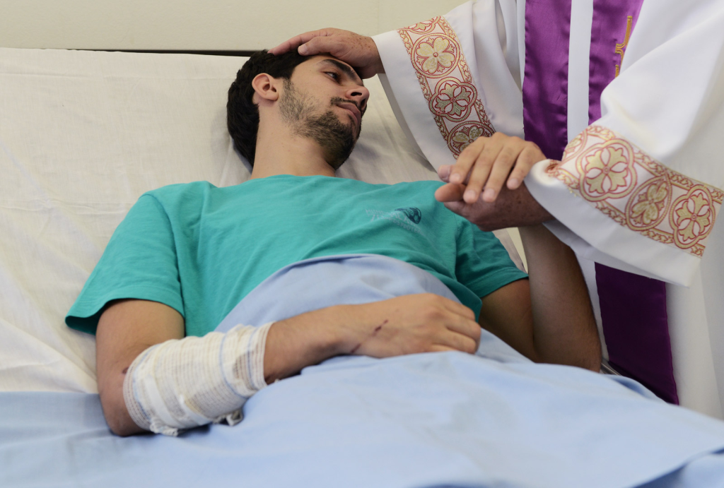 Alguém dentre vós está doente? Mande chamar os presbíteros da Igreja para que orem sobre ele, ungindo-o com óleo no nome do Senhor. A oração feita da fé salvará. (Tg 5,13-15).